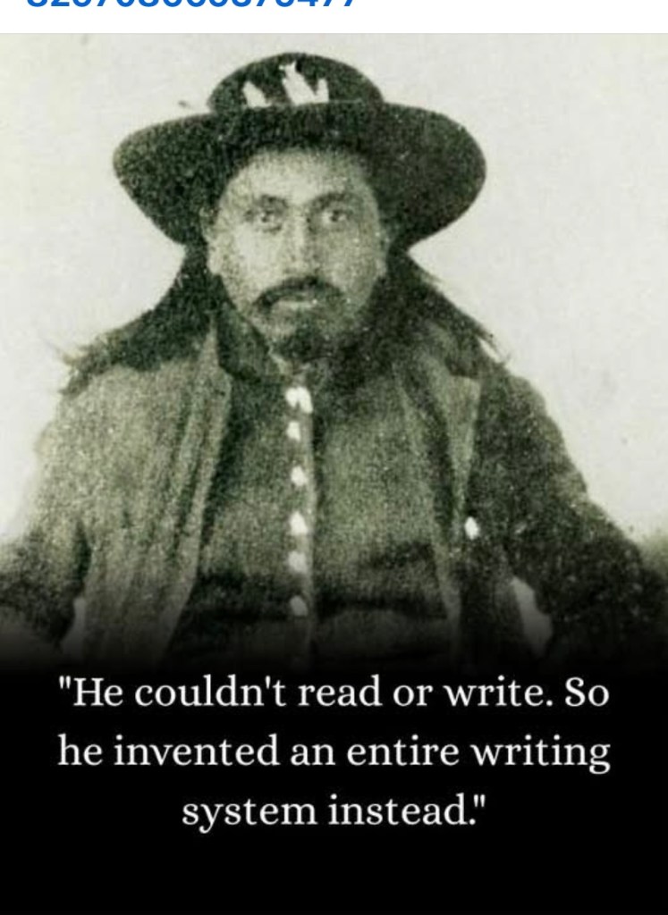 Even today linguists around the world consider his system, called a syllabary because it is based on syllables, and astonishing accomplishment. Just think of it. One man with no education and no resources; he was not literate in any other language, so he had no models. He had only the concept.